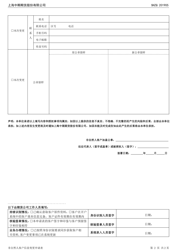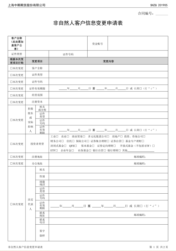 非自然人客户资料变更申请表